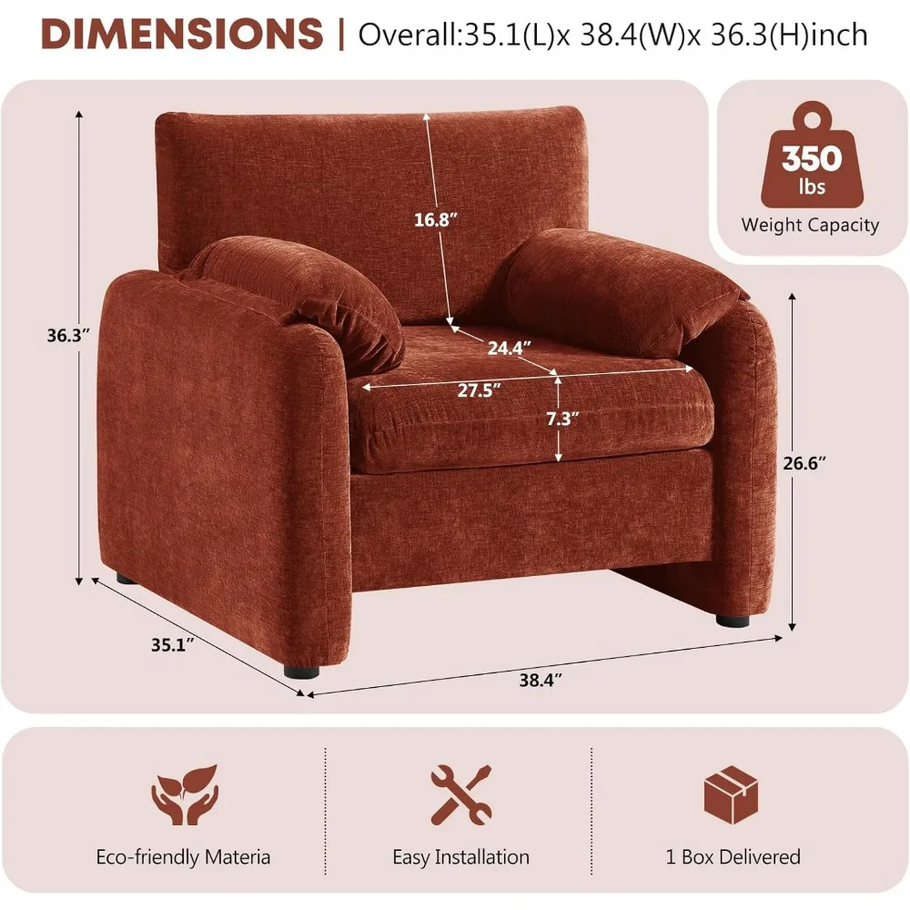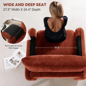 Embrace generous comfort and iconic style with the ZHUXIANG Nova Oversized Accent Chair. Designed for those who appreciate both spacious seating and timeless design, this chair features an extra-wide 38.4-inch seat and wide 5.3-inch armrests, offering ample room to curl up, relax, and unwind. Upholstered in soft, durable chenille fabric and accented with clean wood trim, the Nova chair blends mid-century modern elegance with minimalist versatility—making it a stunning addition to any living room, bedroom, office, or reading corner.